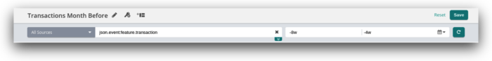 Here, you can see one way of naming your events to make it easier to namespace them and find unique names for each. Using these names, it is easy to select the relevant events in the chart. We create two chart, one for the events in the last month and one for the events in the month before that. This is easy using Loggly’s time syntax, using -4w and -8w for “4 weeks ago” and “8 weeks ago,” respectively.