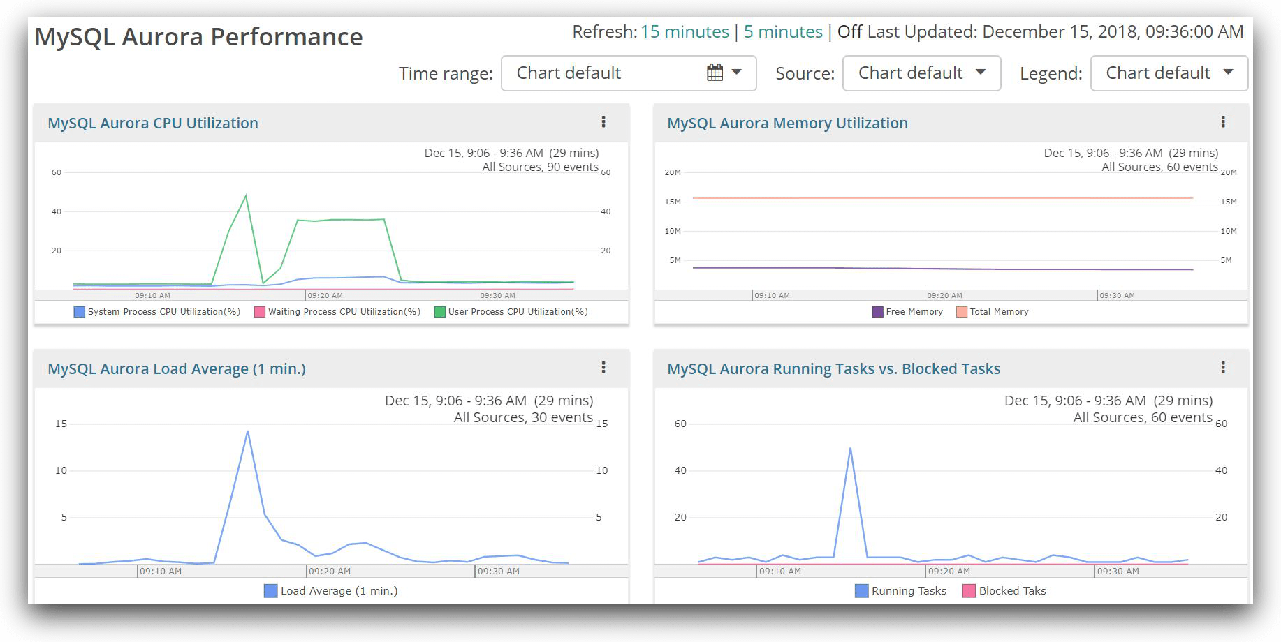The image below shows an Aurora MySQL throughput dashboard created in AppOptics: