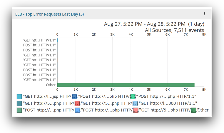 The SolarWinds® Loggly® solution provides a Loggly preconfigured dashboard for Amazon ELB, which visually tracks information that is important to a DevOps or SRE professional. This dashboard is available during trials and to Enterprise, Pro, and Standard customers, so you can start getting insight immediately.