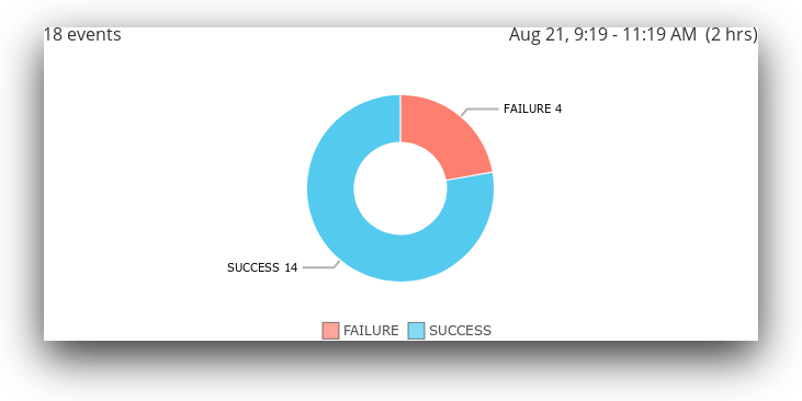Tracking build status is useful for more than just responding to problems. It shows you how healthy your CD process is, and how effective your developers are at resolving and preventing failures. Using Loggly Charts, we can visualize build health as a total, or show how it has changed over time.