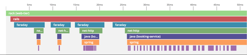 Adding a side of relevant logs, no coding is required! Now that you’ve identified the poor performing transaction trace, a logical step would be to look at all the logs associated with the services making up that transaction to see if abnormalities or errors are causing the problem. To see all the logs associated with a specific transaction trace, find the “Search Logs” button on the trace and click it—that’s it. See how easy it is. Regardless of how many services make up a transaction, the loglines produced from any of those services will have the same embedded traceID and will be displayed in the Loggly event viewer.