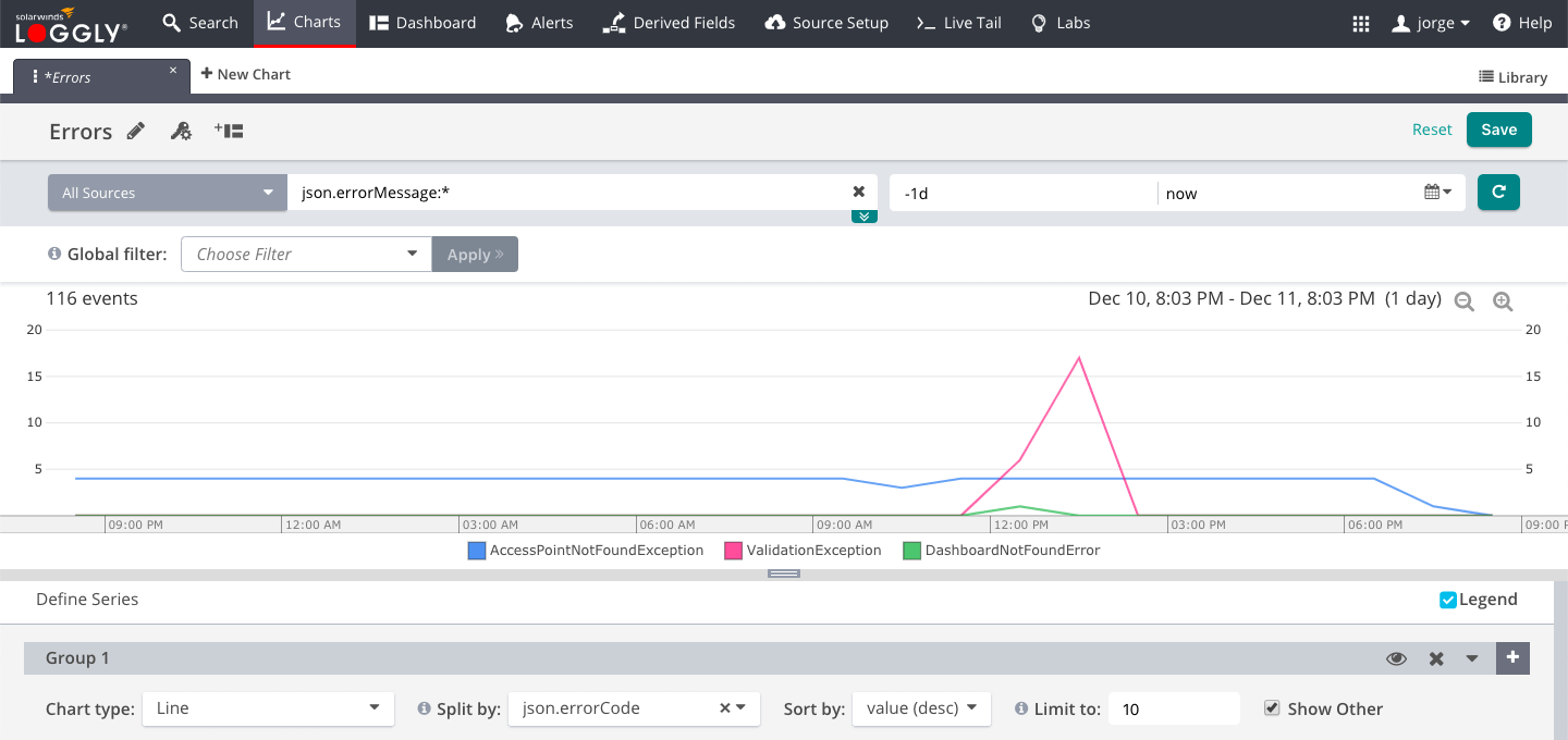 Monitoring solutions like Loggly can alert you in changes in your SLIs over time, such as your error rate. It can help you visually identify the types of errors that occur and when they start. This will help identify root causes and fix problems faster, minimizing impact to user experience.