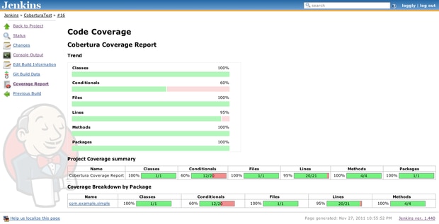 Here is a screenshot of what it looks like when Jenkins builds the example project with code coverage: