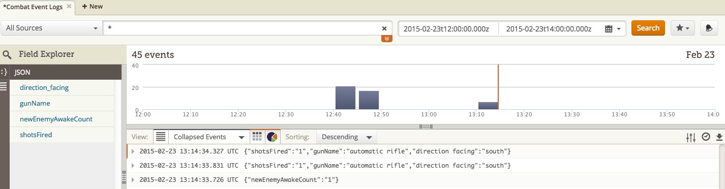 Now, whenever you use Debug.Log or any of its variants (such as Debug.LogError or Debug.LogException), that log will automatically be sent to Loggly. Note that when sending messages to Loggly, it’s useful to send device and game metadata such as screen resolutions, device models, and unique user/session IDs that can help you isolate issues.