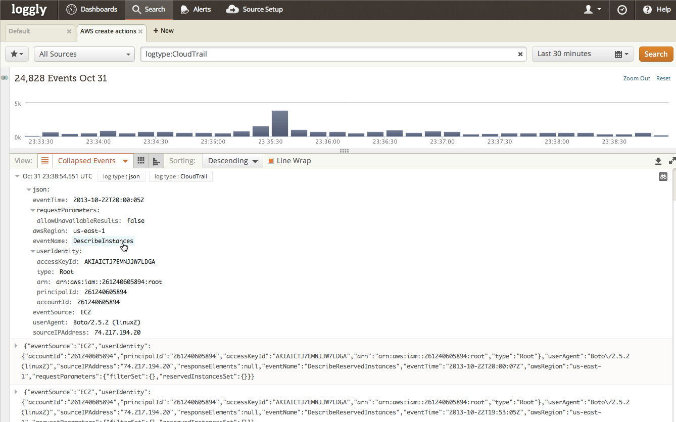 Until now, there hasn’t been a good way to get a record of AWS API calls made on your account. AWS CloudTrail fills an important information need for our customers; and Loggly makes that information much more consumable for solving real operational problems.