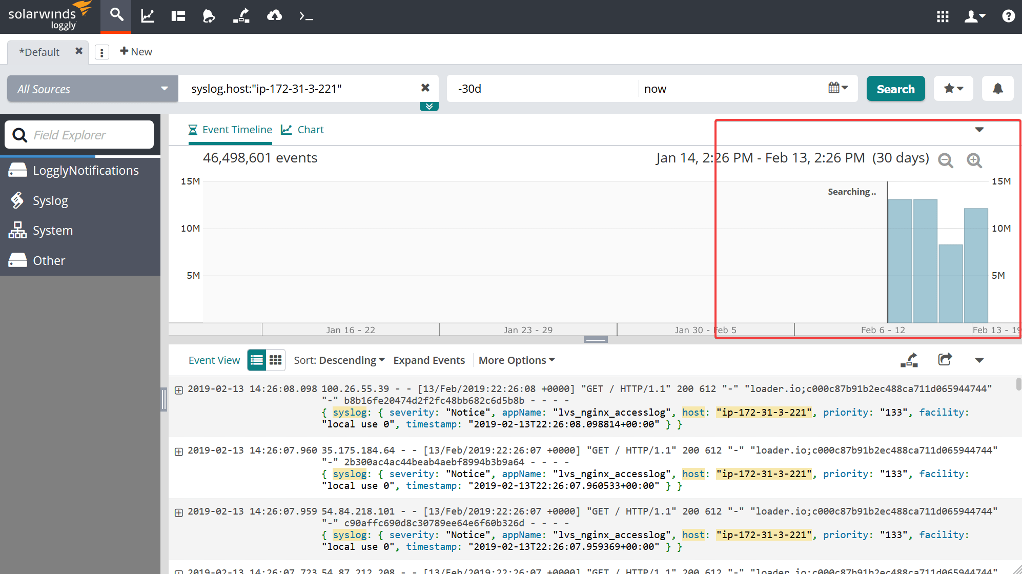 Loggly Search First Run |