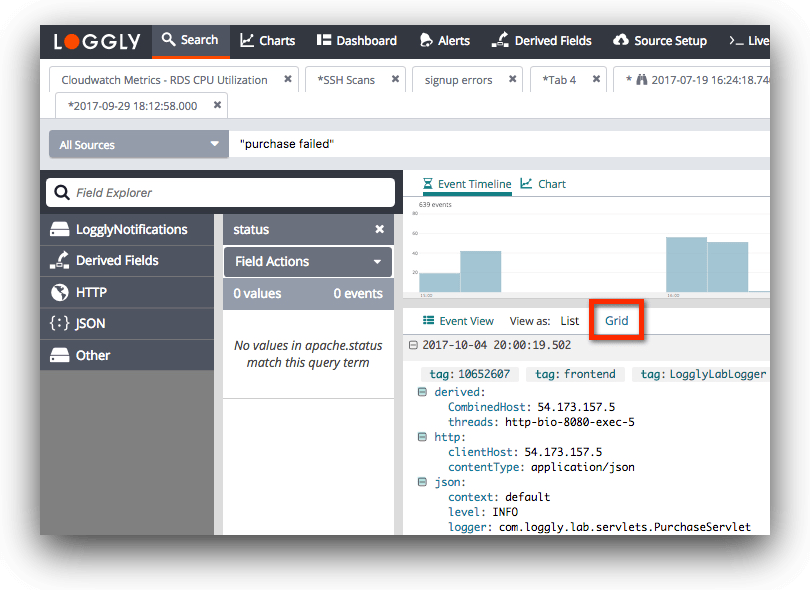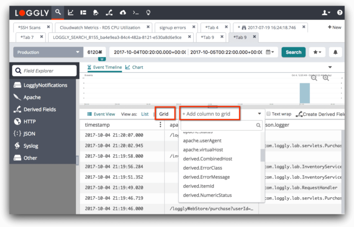 Loggly Grid View Select