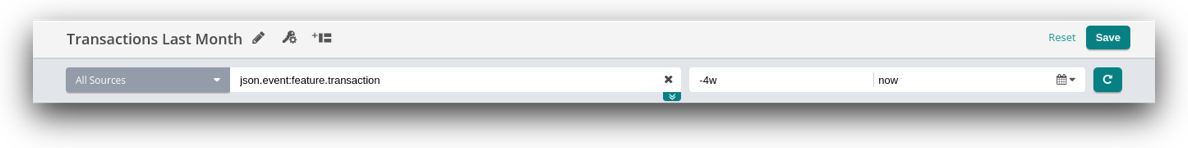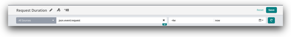 The event field makes it easy to restrict the dashboard view to this specific event. When creating a chart in Loggly, we use this name to select only the events we are interested in. The chart settings here then show the development over the last four weeks, but what time frame makes sense for you depends on your particular use case.