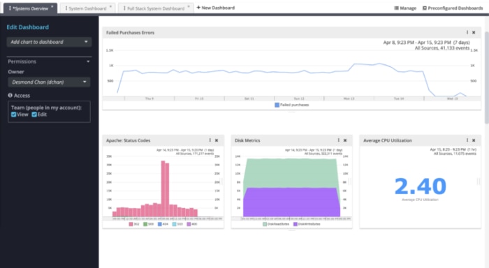 With Loggly, you don’t have to configure multiple open-source solutions for the visualization of logs. Loggly offers a pre-configured dashboard for monitoring Docker and allows you to create your custom dashboards using various type of bar and line charts. The charts can be easily dragged and resized in a dashboard. Further, you can share your dashboard with multiple team members and assign different access restrictions. This will help your team get a quick overview of your environment and collaborate to resolve issues with ease. Further, you can integrate Loggly with tools like Slack and Microsoft Teams to receive important alerts or integrate with your team’s workflow and collaboration tools.